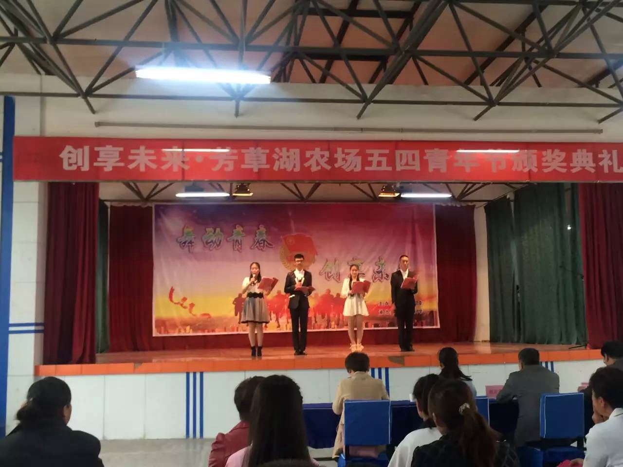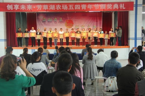 颁奖典礼开始前农场团委书记致词,她首先代表农场党委向各级团干部和与会的优秀青年代表致以节日的祝贺,向支持共青团工作的各级领导和有关部门表示衷心地感谢,对大家为农场又好又快的发展做出的积极贡献致以诚挚的敬意。同时祝愿农场的青年朋友们一步一个脚印用实践去书写壮美青春,在推动农场“十三五“新一轮跨越发展的进程中锻炼成长,历练成熟逐步成功,用青春、智慧和汗水谱写芳草湖农场光辉灿烂的新篇章。