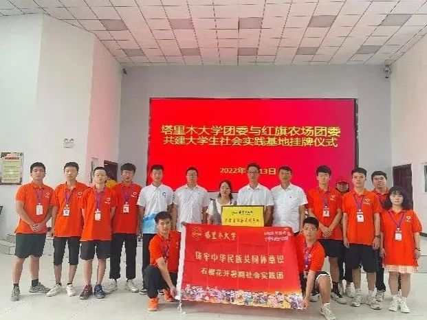 第三师图木舒克市红旗农场团委与塔里木大学团委共建“大学生社会实践基地”挂牌仪式。