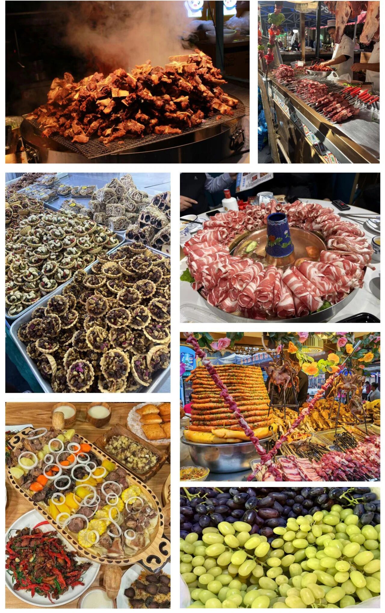 这里瓜果飘香,美食荟萃:香甜哈密瓜、皮薄骏枣、多汁小白杏,还有大盘鸡、烤肉、烤包子等特色风味,尽显西域风情,让人流连忘返。