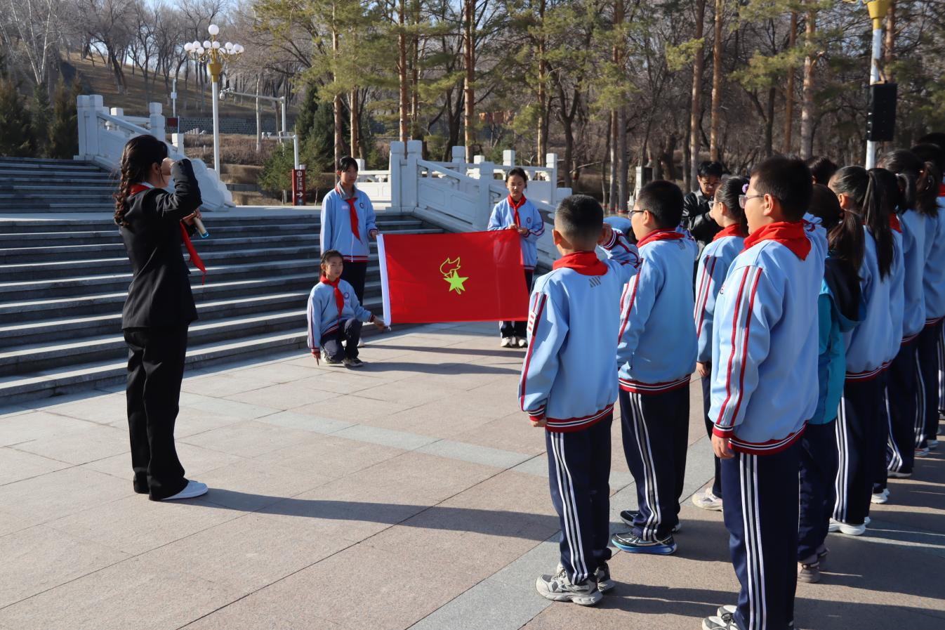 第四师可克达拉市团委、少工委组织140余名少先队员在烈士纪念广场开展主题队日活动。通过奏唱国歌、默哀致敬、敬献花圈、重温誓词、瞻仰献花等庄重仪式,深入了解老一辈兵团人艰苦创业的历程,进一步激发了对革命先辈的崇敬之情和爱国热情,让兵团精神在青少年心中生根发芽。