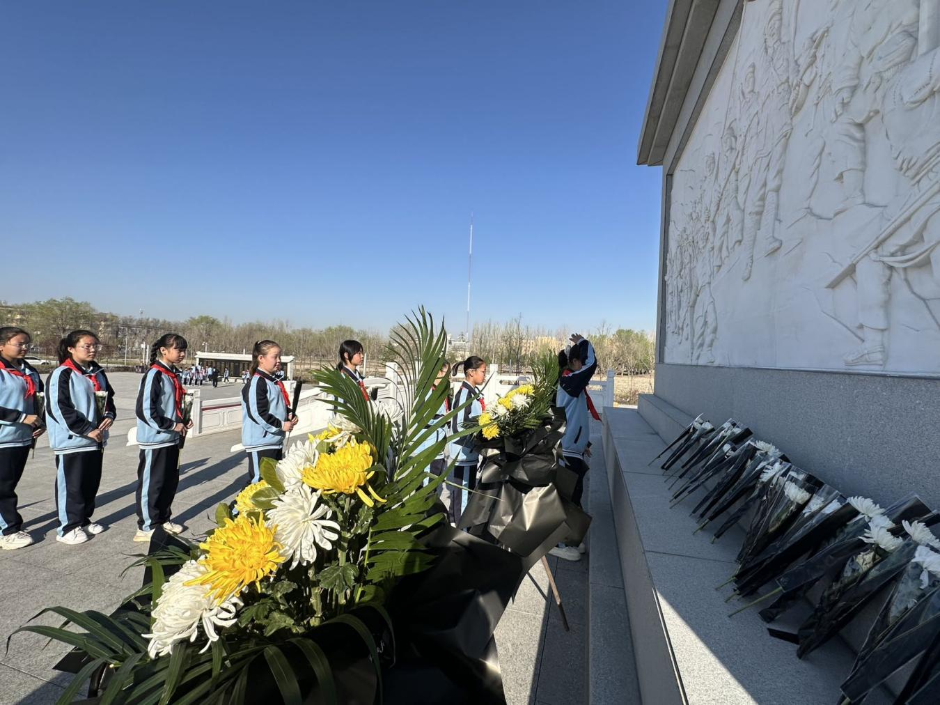 第一师阿拉尔市196名少先队员在烈士纪念碑前,通过敬献鲜花、红歌合唱、情景朗诵等形式,缅怀革命先烈。少先队员们纷纷表示,将铭记革命先烈的牺牲与奉献,以先辈为榜样,努力学习、奋勇争先,用实际行动传承红色基因,争做担当民族复兴大任的时代新人。